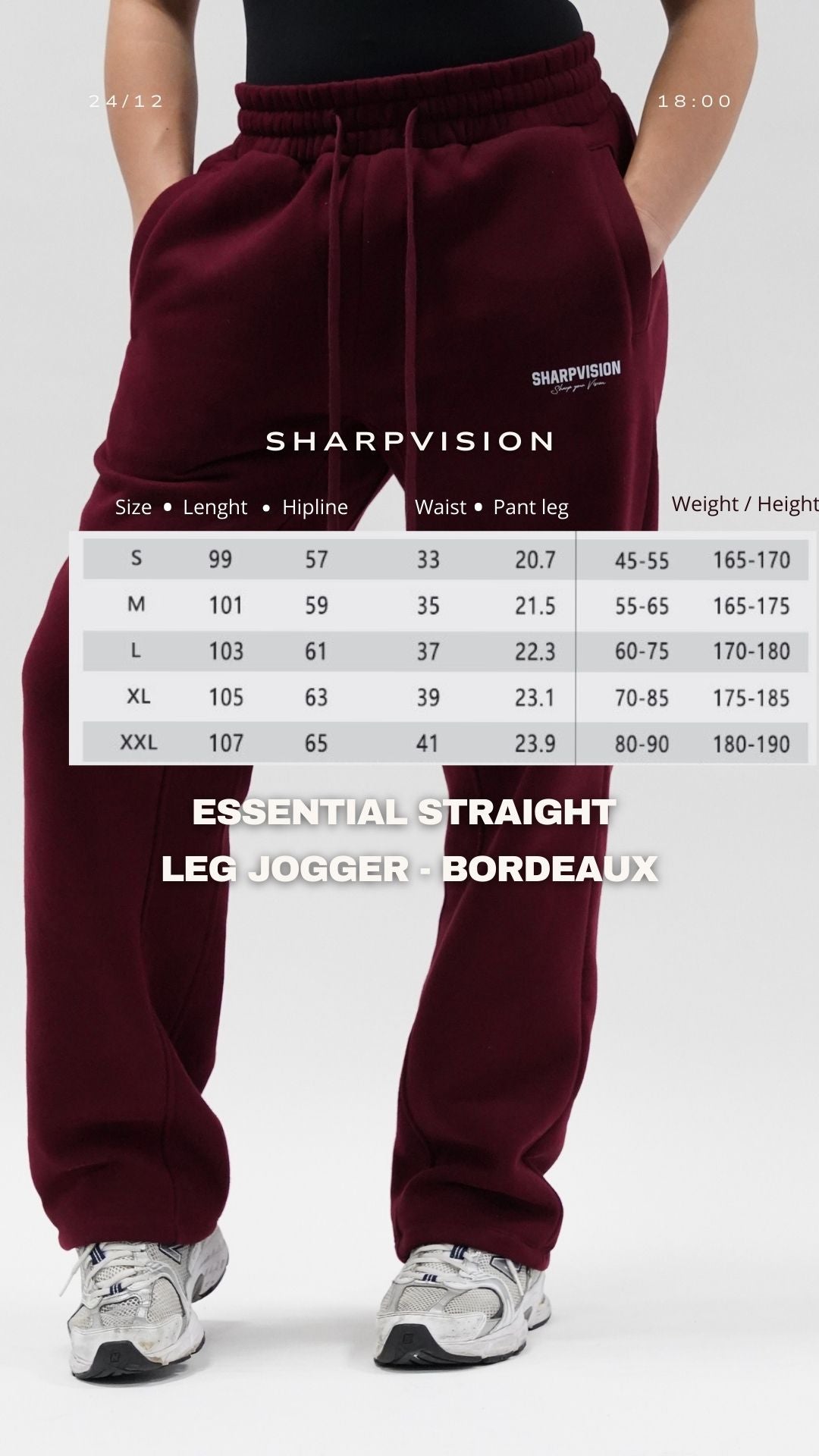 ESSENTIAL STRAIGHT LEG JOGGER - BORDEAUX